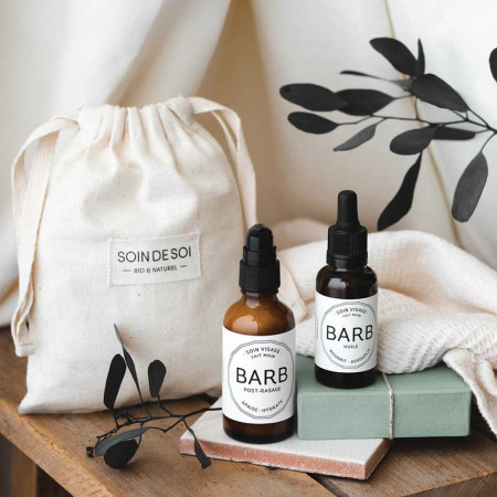 Au départ, Soin pour Soi, c’est un joli spa – labellisé Spas de France – qui a ouvert ses portes au coeur de Gradignan, à une dizaine de kilomètres de Bordeaux. Aujourd’hui, c’est aussi une boutique dédiée au bien-être (avec cours de maquillage, séances de yoga, ateliers nutrition…) et à sa ligne de cosmétiques bio et naturels, créés de façon artisanale dans son propre laboratoire. Honneur aux hommes : pour Noël, l’équipe a sélectionné l’huile Barb, à base d’huile de sésame (pour assouplir la barbe), de jojoba (pour équilibrer la peau) et de ricin (pour densifier et activer la pousse du poil). En sus : de l’huile essentielle de santal (équilibrante), de romarin camphré (cicatrisante), de lavande aspic (calmante) et de Tea tree (purifiante). On y trouve aussi une crème après-rasage à la fois hydratante, apaisante et cicatrisante, composée d’aloé vera, de macérât de calendula, d’eaux florales d’hamamélis et de lavandin. Une dizaine d’autres coffrets – complétés d’un pochon pour les week-ends – et des cartes cadeaux sont à découvrir sur place et sur son site. On y court…!
